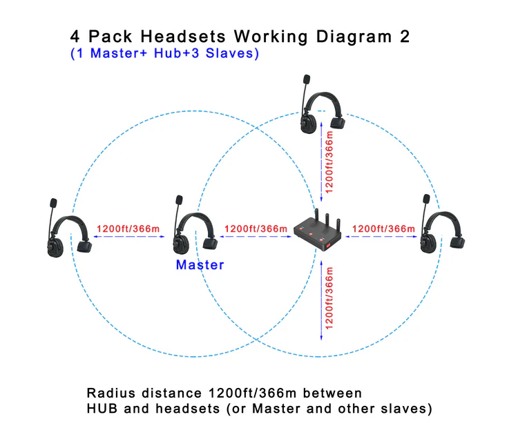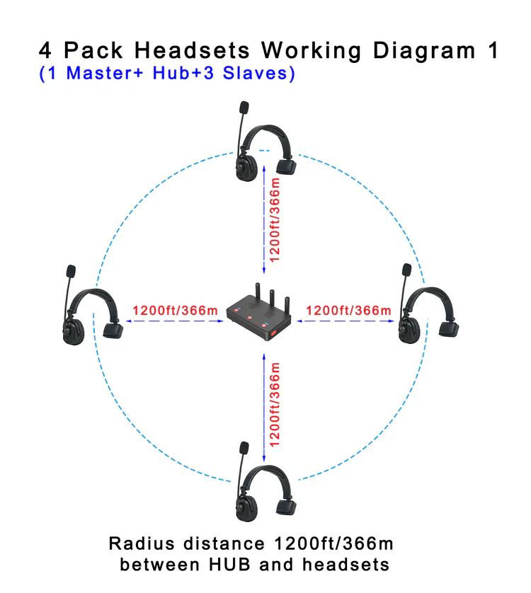 CAME-TV Waero Tekli Kulaklık 4'lü Paket — Çift Yönlü Dijital Kablosuz İnterkom Kulaklık