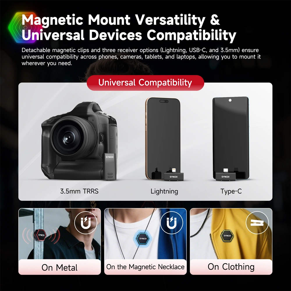 Synco G4 kablosuz yaka mikrofonu, içerik üreticileri, vlog çekimleri, röportajlar ve sosyal medya videoları için geliştirilmiş profesyonel bir ses çözümüdür. Kompakt tasarımı, güçlü çekim mesafesi ve geniş cihaz uyumluluğu ile hem mobil hem kamera kullanıcıları için ideal bir tercihtir.